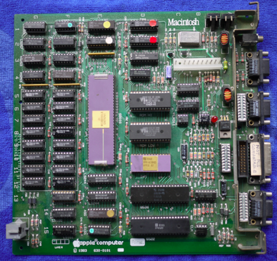 Предполагалось, что на logic board нужно поместить чип Motorola 6809 и плашку оперативной памяти на 64 килобайта, однако затем процессор был заменен на Motorola 68000, использовавшийся в Apple Lisa. Это потребовало переосмысления. «Баррелл не переставал заниматься макетированием плат, а я — писать программы, чтобы эмулировать то, что у него получалось», — вспоминает Бад Триббл, главный специалист по программному обеспечению команды. «По истечении четырех дней у нас была плата с процессором 68000, 65 килобайтами памяти, экран с поточечной адресацией, клавиатура. Мы запустили QuickDraw, подошли к Стиву Джобсу, он посмотрел, что у нас получилось, и сказал: „ОК. Давайте сделаем так“».