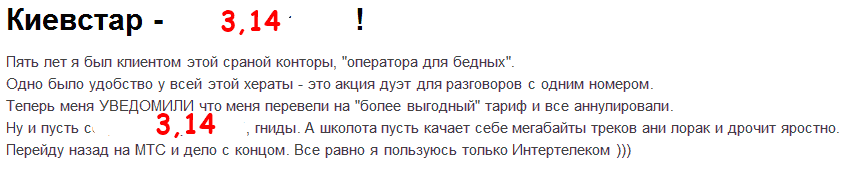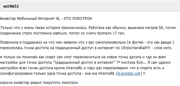 «Погуляв» по Интернету, не сложно убедиться, что случаи «прихрамывания» киевстаровской автоматики – повсеместные. На одном из форумов обсуждение темы «Беспредел Киевстара» собрало за год более 340 страниц бурных недовольств абонентов.
