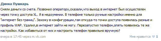 В то же время, оператор упорно пытается убедить «налипших» на телефон сервисного центра, как мухи на варенье, абонентов – это ошибка НЕ компании. И что истинная проблема – в мобильном аппарате. Видимо, смарты живут своей жизнью – сами себе меняют настройки, подключают акции, участвуют в викторинах…