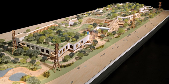 «Facebook West» по проекту Гери построят к 2015 году, и это будет длинное, изломанное и вписанное в ландшафт здание с настоящим садом на крыше. Снаружи – ничего особенного. Архитектор придал кампусу неброский вид: Цукерберг в джинсах и худи старается не выделяться, вот и здание не должно. Внутри – наоборот, эффектно. Согласно открытой философии главы Facebook, весь офис должен стать единой комнатой для трех с половиной тысяч человек. Где-то по опенспейсу разбросаны отдельные офисы и переговорные, где-то пространство деформируется, но все варятся в нем как в настоящей социальной сети. Это позволяет быстро обмениваться свежими идеями и не замыкаться лишь внутри одной команды.