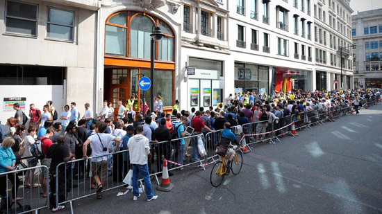 Нельзя не упомянуть и людей, готовых неделями стоять в очередях за новыми iPhone около магазинов Apple. Так, первая палатка в очереди за iPhone 6S появилась в Сиднее за 16 дней до начала продаж смартфона. А очереди за iPhone 6 начали выстраиваться еще за шесть дней до проведения презентации гаджета. Первые покупатели iPhone 5S также начали занимать места за пять дней до презентации.