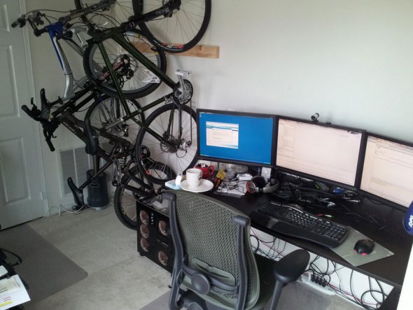 Это место работы хакера в действительности является последним этажом дома и делится местом с комнатой для хранения великов.