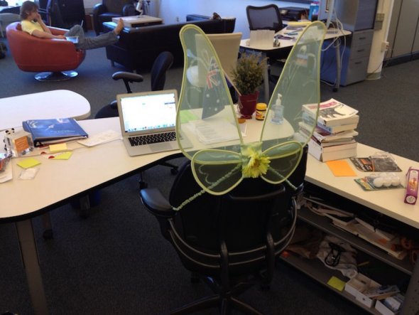 Это большое решение в действительности является столом. Ленточки - это традиция украшать столы на дни рождения сотрудников, говорит этот хакер.