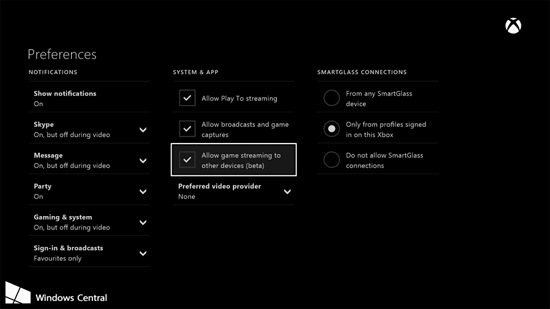 Компания выпустила предварительную версию майского системного обновления для Xbox One, после установки которого в разделе настроек появляется новый параметр «Allow game streaming to other device (beta)».