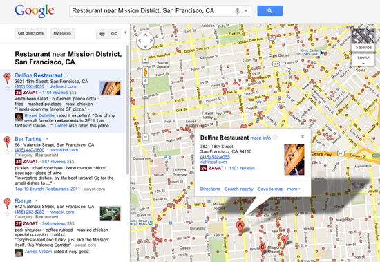 Увидеть на экране все интересующие вас заведения в конкретной области можно и другим путём. Введите в поисковую строку значок звёздочки (*) и Google Maps продемонстрирует все места, которые располагаются в интересующей пользователя области карты.