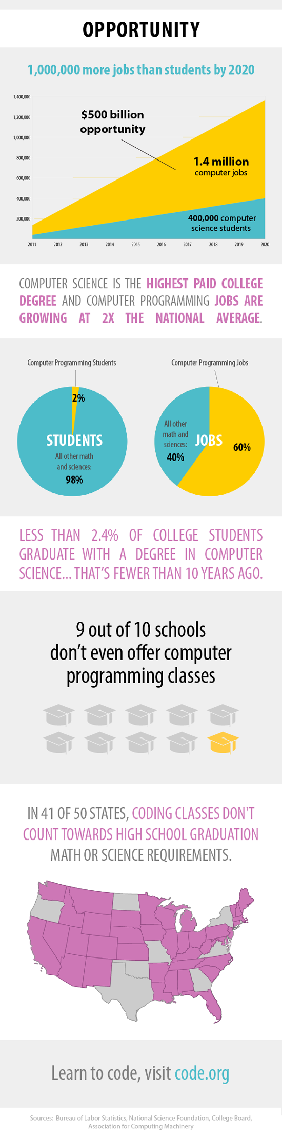 Главная идея — к 2020 году только в США будет 1.4 млн. вакансий, связанных с компьютерами, при этом страна выдаст только 400 тысяч студентов по специальности Computer Science.