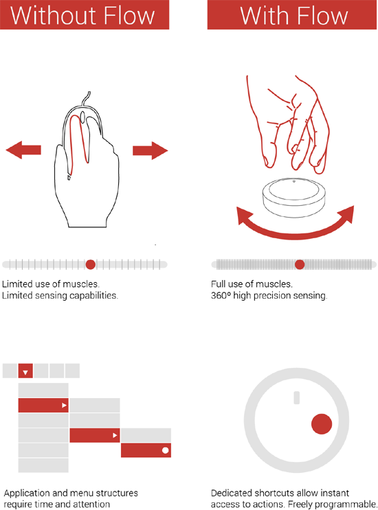 Стартап организовал краудфандинг на платформе Indiegogo, и уже успешно собрал в три раза больше изначальной суммы в $50000 – а до конца кампании ещё пять дней. Бэкерам предлагаются устройства по цене в $99 (продавать Flow в розницу стартап планирует по $150). В первую очередь устройство позиционируют как удобную и более прецизионную замену мыши в графических редакторах.