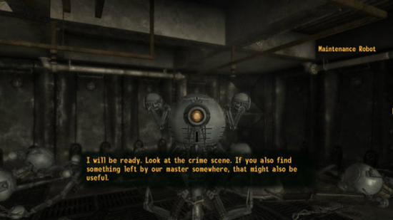 В обоих случаях для прохождения миссии игрокам необходимо допросить каждого из роботов, и в обоих случаях жертвой оказывается главный финансист Убежища, который работал с Волт-тек над его постройкой. Причем в Bethesda скопировали даже странный момент секса с роботом.