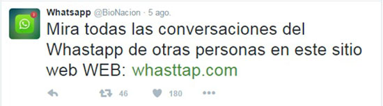 Компания Eset предупредила о новой фишинговой атаке — мошенники предлагают услугу взлома чужих аккаунтов в WhatsApp. Специалисты компании обнаружили подозрительный твит на испанском языке, в котором предлагалось перейти по ссылке, чтобы почитать переписку других людей в WhatsApp, сообщили CNews в Eset.
