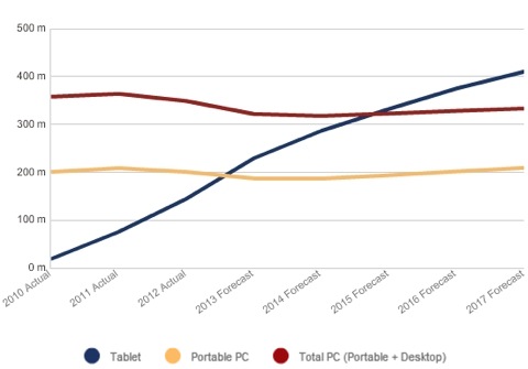 В 2013 г. планшеты обгонят по поставкам мобильные ПК, а два года спустя - ПК всех типов, включая настольные компьютеры. Это является следствием глобального смещения потребительских предпочтений.