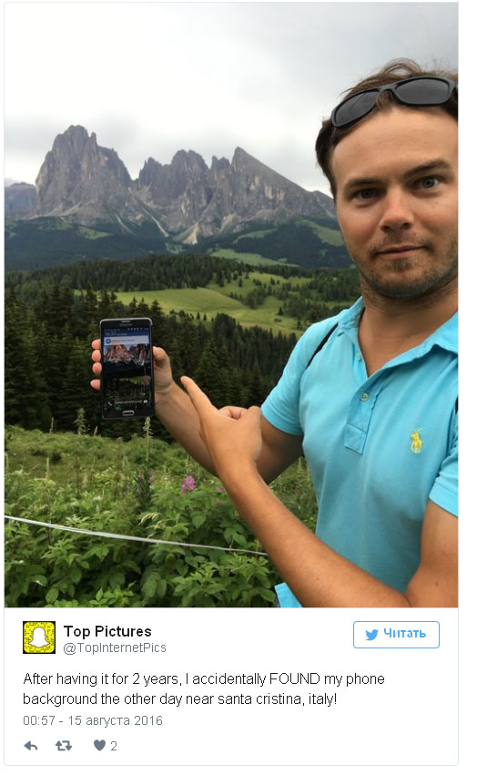 Пользователь Reddit под ником xbshooter поведал интернету удивительную историю о том, как он в ходе путешествий случайно наткнулся на горный пейзаж, установленный на его смартфон в качестве заставки.