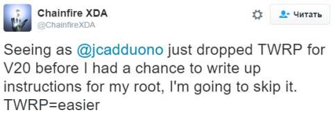 Новость о возможности получения прав суперпользователя и установки утилиты SuperSU на LG V20 сообщил известный разработчик Chainfire, который всего несколько дней назад сумел проделать это на новых смартфонах от Google.