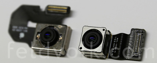 На сравнительных снимках можно видеть, что камера iPhone 6 тоньше и шире, чем iSight у iPhone 5s. Утверждается, что в новом модуле Apple реализовала технологию оптической стабилизацией изображения (OIS).