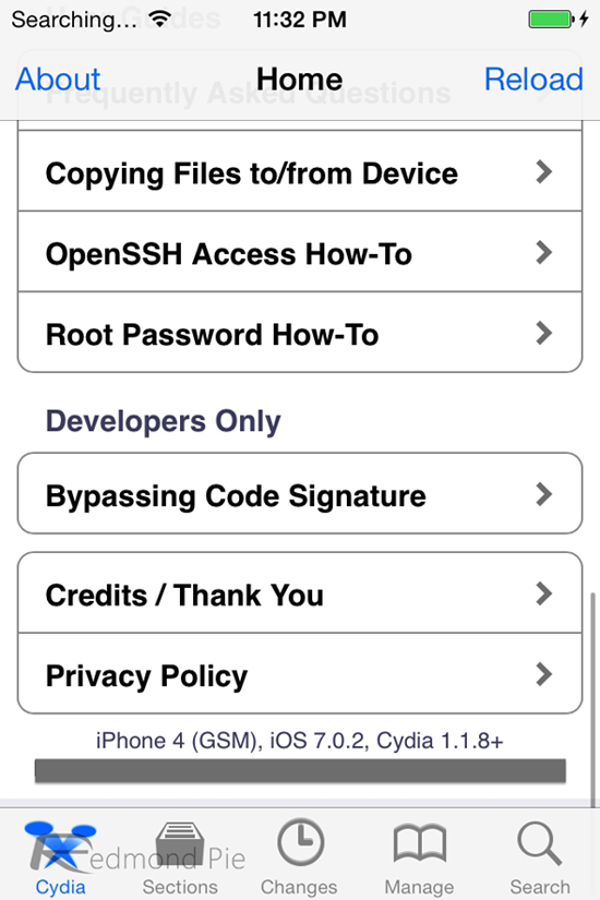 Сегодня стало известно, что iOS 7 уже взломали и установили Cydia. Скриншоты системы сегодня выложил разработчик Cjori. До отвязанного джейлбрейка общего пользования еще очень далеко, но, как видите, прогресс есть. Cydia на iOS 7 работает не особо гладко и хакеры над этим работают. Джей Фриман, основатель Cydia, чуть позже сказал, что Cjori портировал Cydia использовав модифицированный код из предыдущего релиза.