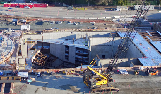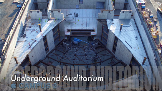 В течение года Apple планирует завершить строительство новой штаб-квартиры, которую Стив Джобс назвал «космическим кораблем» не только из-за его футуристического вида, но и по причине впечатляющих размеров. В список удивительных архитектурных решений попадет также новый конференц-зал кампуса, в котором пройдет презентация будущих iPhone 8 и iPad Air 4. В Сети появилось видео о строительстве штаб-квартиры, на котором впервые показана подземная аудитория Apple.