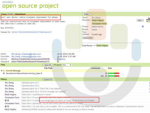 Во-первых, планшет засветился при тестировании ряда 64-разрядных библиотек на чипах Denver. Вкупе с активным участием в процессе создания патчей сотрудника NVIDIA это доказывает, что Volantis будет построен на основе двухъядерной версии Tegra K1. Судя по некоторым пояснениям, данный код также включат в стандартную сборку Android L для 64-разрядного варианта нового чипа NVIDIA.
