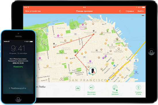 Сервис Find My iPhone («Найти iPhone») — геолокационный инструмент для поиска пропавших или украденных смартфонов Apple. Сервис предлагается в составе операционной системы iOS с осени 2010 года. Для того, чтобы начать поиск, следует зайти на iCloud.com или в приложение «Найти iPhone» на другом iPhone, iPod, iPad или Mac пользователя. Благодаря Режиму пропажи можно как найти нынешнее местоположение смартфона, так и проследить за его перемещениями. Начиная с iOS 7 появилась опция «Блокировка активации» — так можно запретить вору доступ к устройству, что делает кражу практически бесполезной. На экран iPhone можно вывести сообщение с просьбой вернуть смартфон и своими контактными данными.