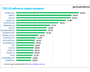 Названы самые популярные сайты в Украине за январь 2013-го