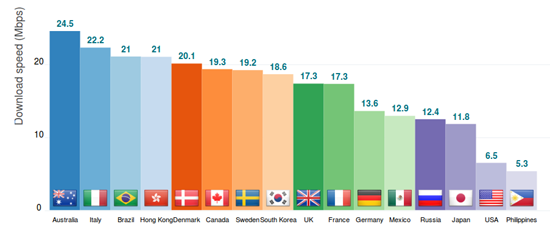Страной с самой высокой средней скоростью доступа в Интернет – 24,5 Мбит/сек – в сетях LTE стала Австралия.