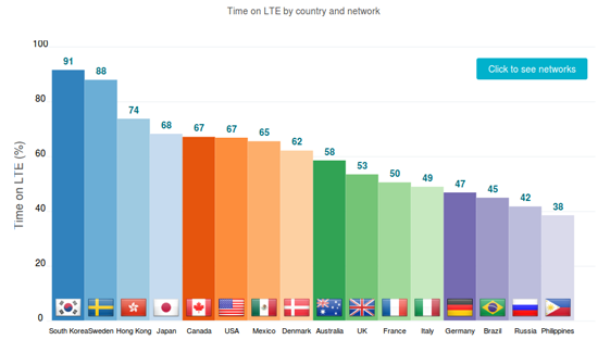 Кроме неё в пятёрку стран с самой высокой скоростью доступа в сетях LTE вошли Италия, Бразилия, Гонконг и Дания. Россия получила в рейтинге 13 место с результатом 12,4 Мбит/сек. Данных по Украине в исследовании нет.