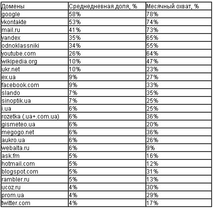 Исследование выполняется по заказу ИнАУ компанией InMind. По итогам августа 2013 г. на базе медиа-панели численностью 5 тыс. человек определен список популярных доменов, посещаемых украинскими пользователями: