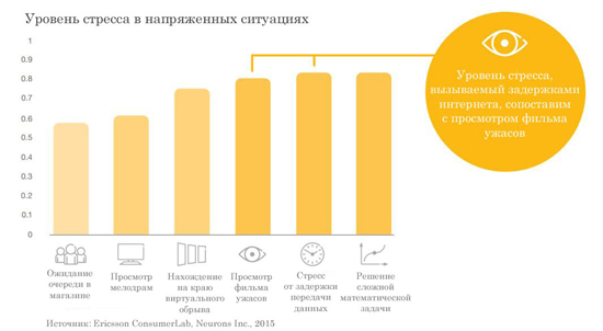Пока эксперты Ericsson обращают внимание на важность быстрого и бесперебойного соединения для операторов, медленный или некачественный интернет никуда не уходит из жизни пользователей. Уже проводилось несколько подобных исследований, в ходе которых у участников, использующих медленный интернет, замеряли уровень фрустрации в моменты его долгой загрузки.
