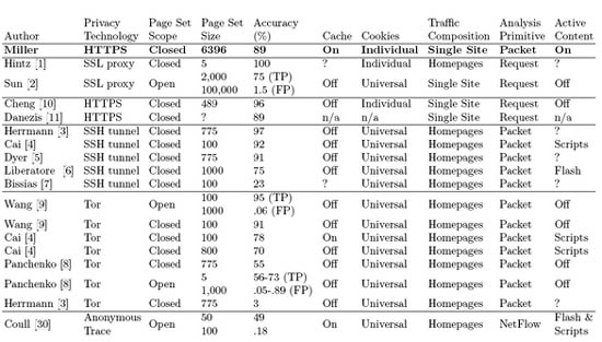 Тема статистического анализа трафика SSL, Tor и SSH часто становится предметом научных исследований. Работа Миллера выделяется среди прочих исключительно высокой точностью. Авторам удалось снизить количество ошибок анализа в 3,5 раза, по сравнению с предшественниками. По результатам эксперимента на 600 ведущих сайтах медицинской, финансовой, юридической и развлекательной направленности точность распознавания посещенных страниц составила 89%. Что характерно, эксперимент проводился на полном содержании сайтов, а не только на заглавных страницах, и с включенным кэшем.