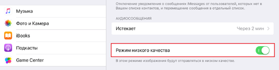 И речь сейчас пойдет не о красоте и привлекательности стикеров и разного рода спецэффектов. Куда больший интерес пользователей должен вызвать новый алгоритм сжатия вложений, отправляемых посредством фирменного мессенджера. Для того чтобы снизить потребляемый трафик хотя бы в моменты переписки, вам потребуется перейти в приложение «Настройки» — «Сообщения», где, в свою очередь, передвинуть ползунок напротив строки «Режим низкого качества». При активном режиме все вложения, включая фото-, видео- и аудиозаписи будут передаваться в оптимизированном виде.