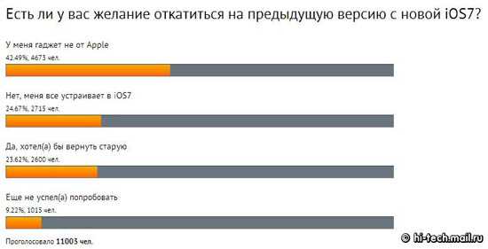 Во втором опросе, посвященном новой ОС Apple, мы спросили у наших читателей, есть ли у них желание откатиться на предыдущую версию с новой iOS 7? На данный момент в голосовании приняло участие более 11 000 человек.