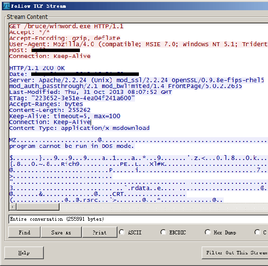 После открытия зараженного документа компьютер жертвы устанавливает соединение с удаленным сервером и скачивает самораспаковывающийся RAR-архив winword.exe с вредоносной нагрузкой, пишет антивирусная компания McAfee.