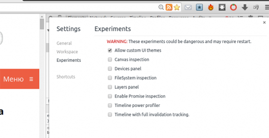 Этот флаг позволяет активировать экспериментальные опции в настройках инструментов для разработчика Chrome. После включения этой опции и перезагрузки запустите DevTools и нажмите на символ шестерёнки (настройки) в верхней правой части панели. В открывшемся окне вы обнаружите новую вкладку Experiment.