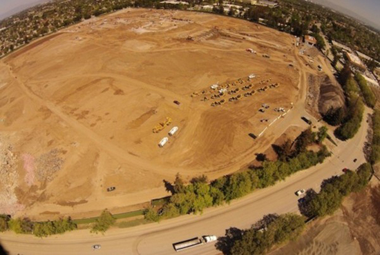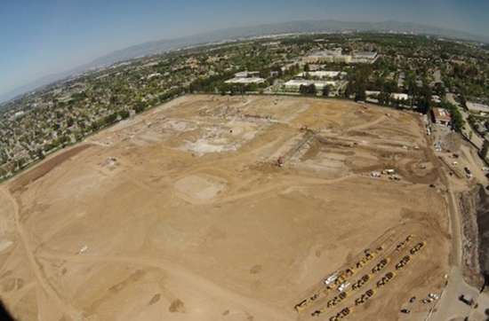 В Сети появились новые аэрофотоснимки «космического» кампуса Apple. Судя по ним, снос прежних заданий, находившихся на территории, уже завершен, и строительная техника уже прибыла на место.