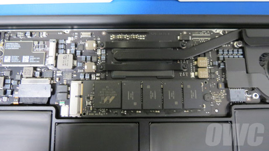 Основные отличия в расположении компонентов заключаются в новом разъеме SSD-накопителя. Примечательно, что Apple даже использовала систему охлаждения для SSD-накопителя, что позволило повысить ресурс памяти.