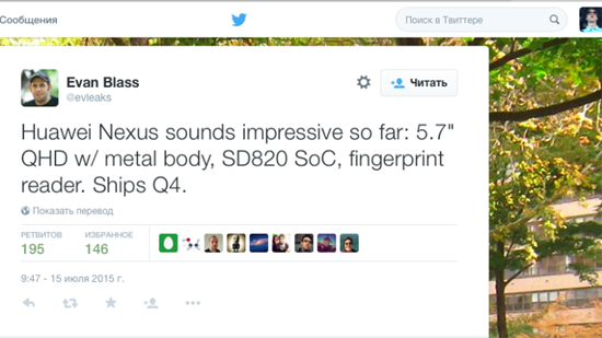 Итак, согласно его утверждению, за производство грядущего Nexus будет ответственна компания Huawei, с тонкостями произношения названия которой мы уже знакомы. Кроме того, смартфон получит 5,7-дюймовый дисплей с разрешением 2560 х 1440 пикселей. Корпус у девайса будет металлический, а получить доступ к его содержимому удастся после считывания отпечатка пальца владельца.