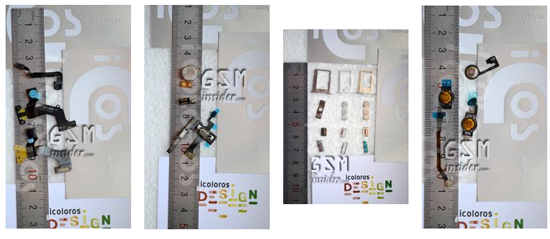 На первом изображении можно видеть фронтальный фотомодуль будущего флагмана американской компании, на втором изображении — компоненты, отвечающие за вибрацию устройства, на третьем — лотки для SIM-карт. Последний снимок показывает кнопки Home у трех устройств.