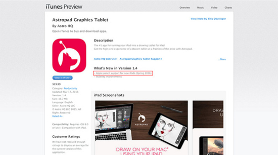 Информация пришла из неожиданного источника — помогло обновление популярного графического приложения Astropad Graphics Tablet. В новой версии (1.4) внезапно появилась поддержка Apple Pencil для нового, неанонсированого iPad. Ситуация необычная и странная — раньше поддержка новых устройств добавлялась уже после релиза, а не до него.