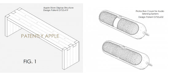 Среди прочего в патентах Apple были найдены изображения новых столов для фирменных магазинов Apple Store и защитные чехлы для беспроводных колонок Beats.