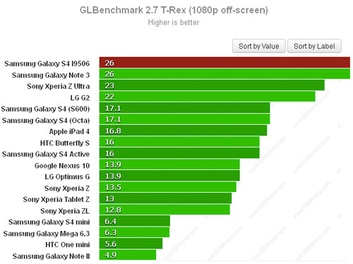 Samsung Galaxy S4 I9506 оказался лучшим в бенчмарке GLBenchmark 2.7 T-Rex и смог обойти такие гаджеты, как Samsung Galaxy Note 3, Sony Xperia Z Ultra, LG G2, Samsung Galaxy S4 (S600) и Samsung Galaxy S4 (Octa).