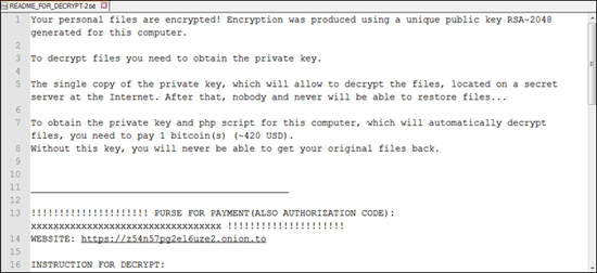 Для восстановления доступа к закодированным данным жертве предлагается оплатить расшифровку с помощью криптовалюты Bitcoin. Стоимость процедуры составляет несколько сотен долларов США.