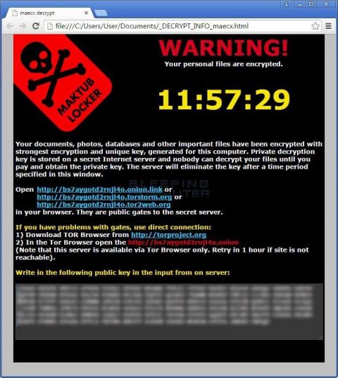 Приложение Maktub Locker распространяется по электронной почте с выглядящими достоверными адресов. В письме обычно требуется оплатить просроченный счёт, при этом внутри сообщения указывается реальный домашний адрес пользователя. Также в сообщении содержится ссылка, якобы открывающая версию документа для печати, переход по ней скачивает нечто похожее на документ Word. Открытие этого документа запускает процесс шифрования файлов.