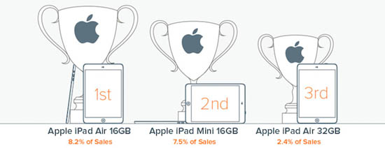 Интересны отдельные данные по каждой из сетей. Например в Target тремя самыми популярными продуктами оказались iPad Air и iPad mini разных моделей. В общей сумме 18% продаж всей сети магазинов пришлось на три этих устройства. Для сравнения планшетов под управлением Android было продано в 10 раз меньше.