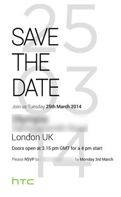 HTC разослала приглашения на пресс-мероприятие, запланированное на 25 марта в Лондоне и Нью-Йорке. Ожидается, что в этот день будет представлен новый флагманский смартфон, который фигурирует под названием HTC M8. Как отмечает BGR, компания поступает правильно, вынося презентацию новинки в отдельное мероприятие и избегая при этом участия в перенасыщенной анонсами выставке MWC.