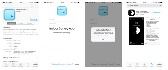 Indoor Survey не так просто найти: в списке программ от Apple новинка не числится, приложение не появляется даже если воспользоваться поиском и точно указать название ПО. Единственный вариант скачать программу — перейти по прямой ссылке в App Store. Но даже после этого опробовать работу новинки не получится, так как она просит зайти под своей учетной записью Apple ID, которой администратор должен предварительно выдать соответствующие права.
