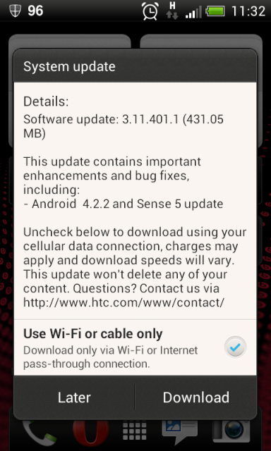 Сначала LlabTooFeR в личном аккаунте Twitter, а потом и владельцы HTC One SV в Европе и Индии начали сообщать о появлении долгожданного обновления с Android 4.2 за номером 3.11.401.1. Оно также содержит Sense 5, не самую свежую, но относительно новую версию фирменной оболочки. К сожалению, в описании обновления есть только указанные выше два пункта — на этот раз HTC не расщедрились на подробный список нововведений и улучшений. Но можно предположить, что набор возможностей у One SV после обновления будет таким же, как у смартфонов линейки Desire этого года. BlinkFeed, свежее приложение камеры с «видеоподборками» и Zoe, новый визуальный стиль — все это можно ждать после установки пакета.