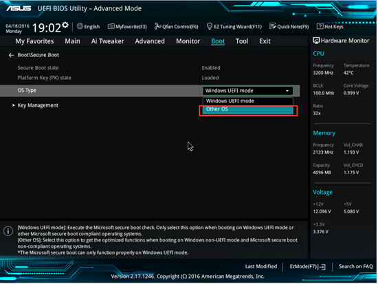 На официальном сайте Asus был опубликован FAQ, объясняющий как избавиться от проблемы. Компания в принципе не рекомендует пользователям Windows 7 устанавливать патч KB3133977, но если это уже произошло, придется зайти в настройки UEFI (Advanced Mode Menu —> Boot —> Secure Boot) и в строке OS Type выбрать пункт Other OS, а затем перезагрузить устройство.