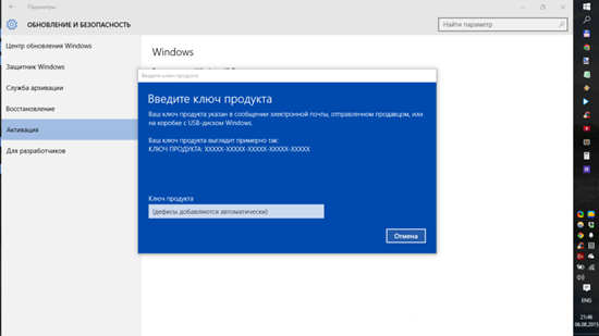 На рабочем столе нелицензионной Windows 10 будет показано напоминание о необходимости активации. Никаких внезапных полноэкранных пугалок, прерывающих текущий сеанс работы, как это было в Windows 8, больше нет.