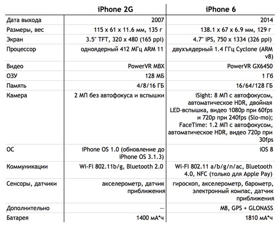 Со структурой видео мы не мудрили — сравнили основные характеристики iPhone и iPhone 6 (корпус, дисплей, железо, операционку), сделали акценты на наиболее значимых моментах. Например, что явно прослеживается преемственность дизайна несмотря на семилетний временной разрыв, или как роль смартфона определяет его возможности.
