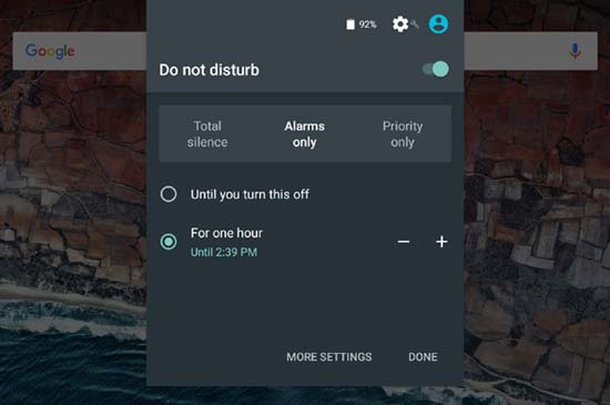 В шторке уведомлений можно настроить режим «Не беспокоить»