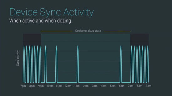 Отдельного упоминания заслуживает новая функция Doze, целью которой является продление жизни батареи устройства. Данная функция управляет работой приложений, когда смартфон находится в спящем режиме. По словам Google, автономность устройства увеличивается в два раза.