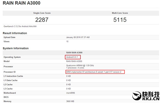 На просторах сети нам удалось обнаружить результаты бенчмарка еще одного смартфона с кодовым именем «RAIN RAIN A3000», среди характеристик которого указано присутствие Snapdragon 820, 4 Гб оперативной памяти и Android 6.0. Таинственный смартфон приятно удивил производительностью и в одноядерном тесте набрал 2287 баллов, а в многоядерном – 5115.